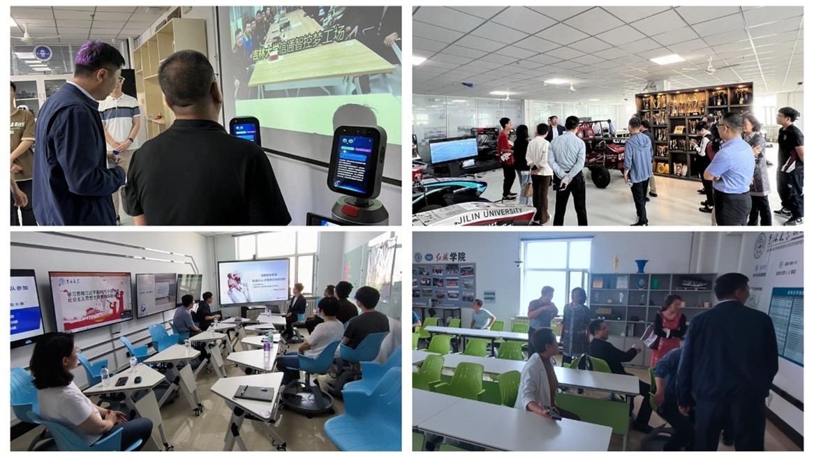 随后,研学人员抵达太阳集团官网南岭校区工程训练中心,在赵书记带领和介绍下先后参观了红旗学院、机械XR创新创业实践示范基地、信通智控梦工场、太阳集团官网学生赛车队创新创业实践示范基地、i分析梦工场。赵军书记强调,不忘历史,才能开辟未来;善于传承,才能善于创新。伟大时代呼唤伟大精神,伟大精神凝聚伟大力量,伟大力量护航伟大事业。国家的强大,根基在民心;民族的复兴,关键在精神。我们要学习中国航空人和中国航天人的精神。“忠诚奉献、逐梦蓝天”的航空报国精神就是伟大民族精神在中国航空工业落地生根的具体体现,就是推动中国航空事业不断前进的强大精神动力,就是全体航空人接续奋斗、不负青春的宝贵精神财富。在实施载人航天工程的进程中,中国航天人牢记党和人民的重托,满怀为国争光的雄心壮志,自强不息,顽强拼搏,团结协作,开拓创新,取得了一个又一个辉煌成果。在工训中心和大学生实践基地的参观,大家可以切身感受到学校教学资源能力和教学手段水平不断在跃升,增强自豪感和自信心。通过与各基地师生们的交流,大家可以强烈感受到艰苦创业敢闯会创精神在吉大深深扎下了根。作为教育工作者,我们一定要秉持“培育时代新人、服务国家需求、打造人才高地”的教育理念,时刻关注创新科技在教学、科研领域的重要作用,多措并举、多管齐下,全面提升学生创新研究能力和自主学习能力,为太阳集团官网实现“中国特色、世界一流”目标贡献出44118太阳成城集团的坚实力量。