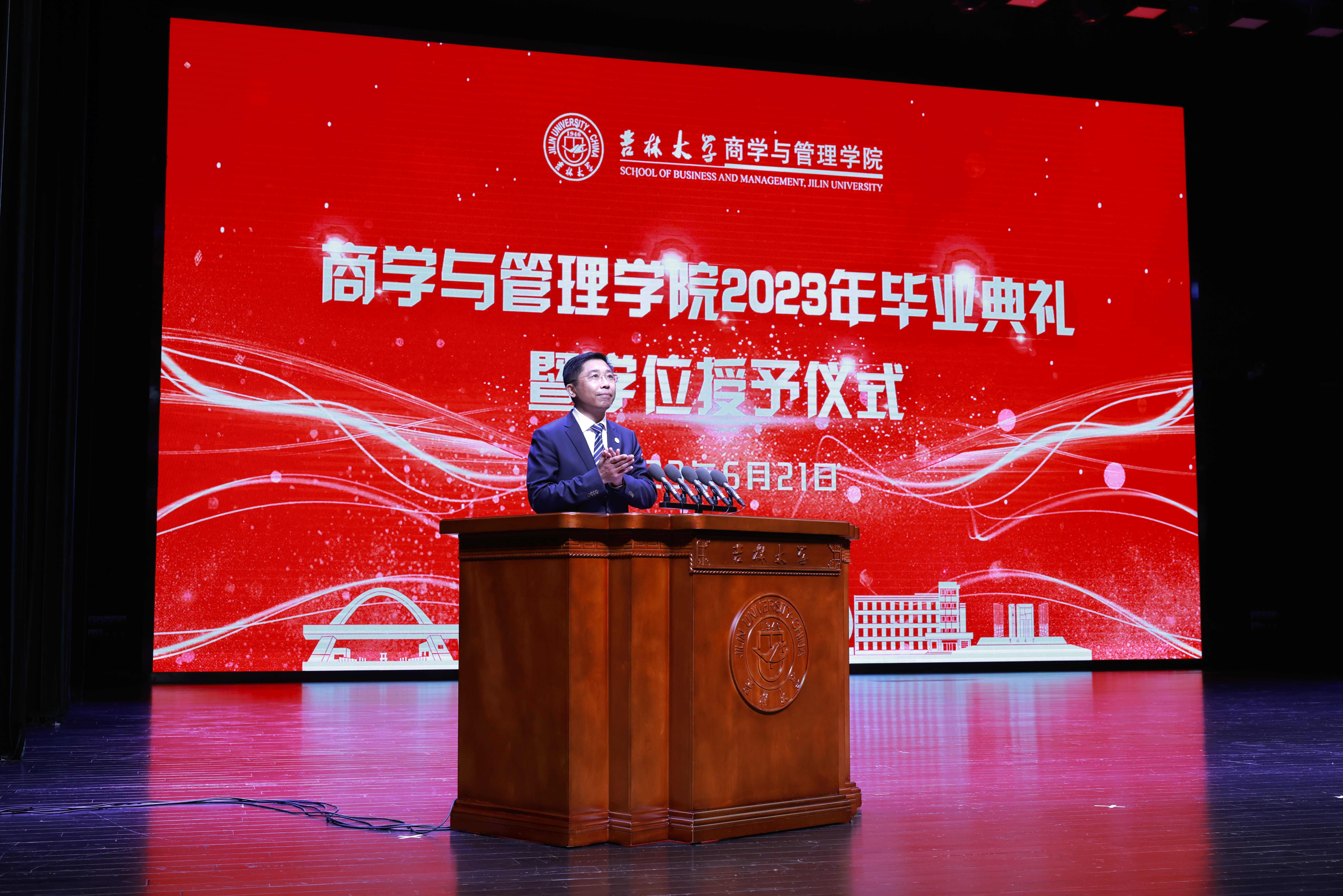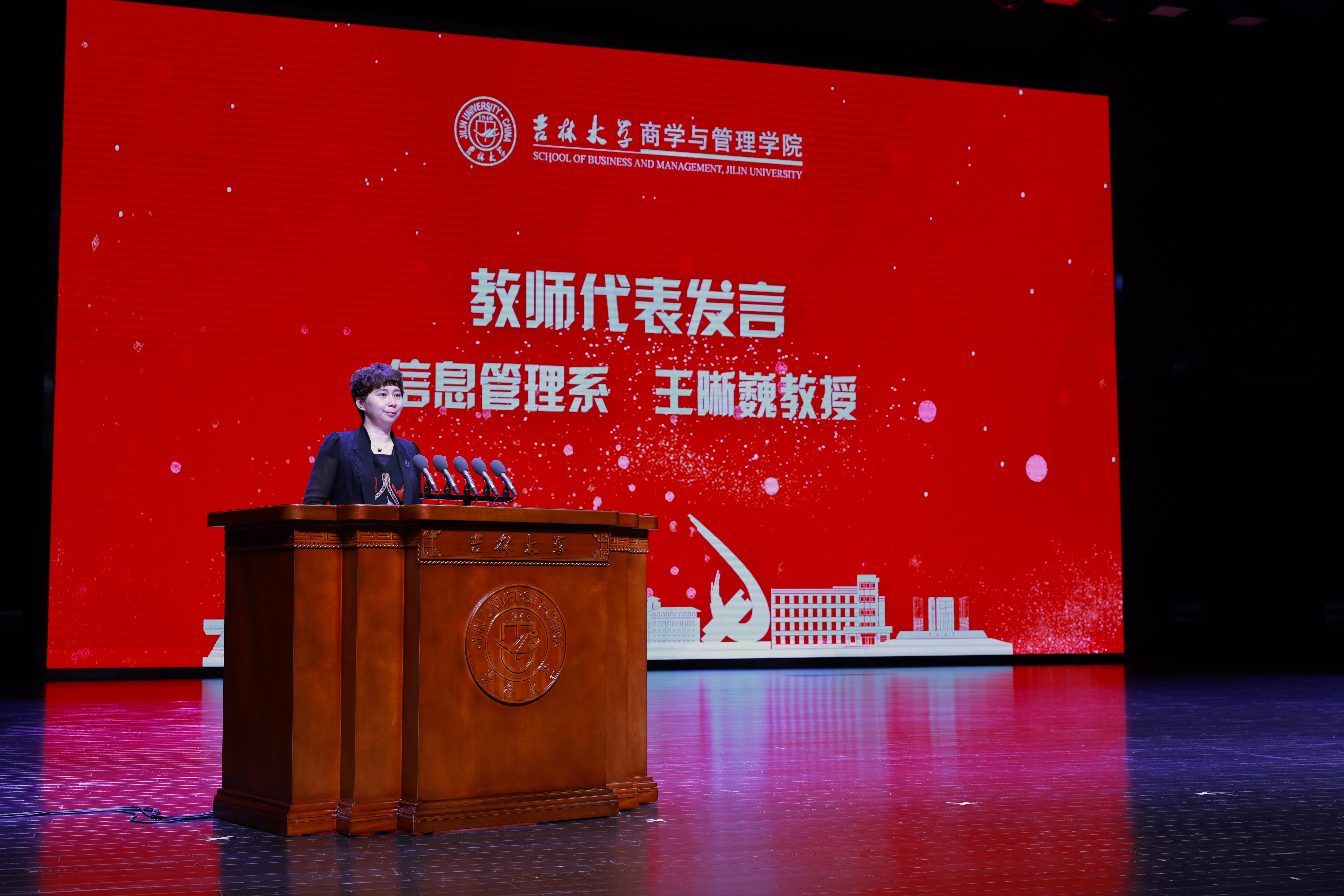 典礼上,太阳集团官网社会科学研究院副院长、青年长江学者、44118太阳成城集团信息管理系王晰巍教授,作为教师代表进行了发言。王晰巍教授在发言中对毕业生们送上祝福:第一,希望同学们心有梦想,能勇立时代潮头。第二,希望同学们追求优秀,把勤奋作为习惯。第三,希望同学们终身学习,提升人生格局。最后,王晰巍教授祝愿吉大商管的学子们能够不断开创个人职业生涯发展的灿烂前程,不断为吉大商管学院争光,不断谱写国家发展和时代腾飞的辉煌篇章!
