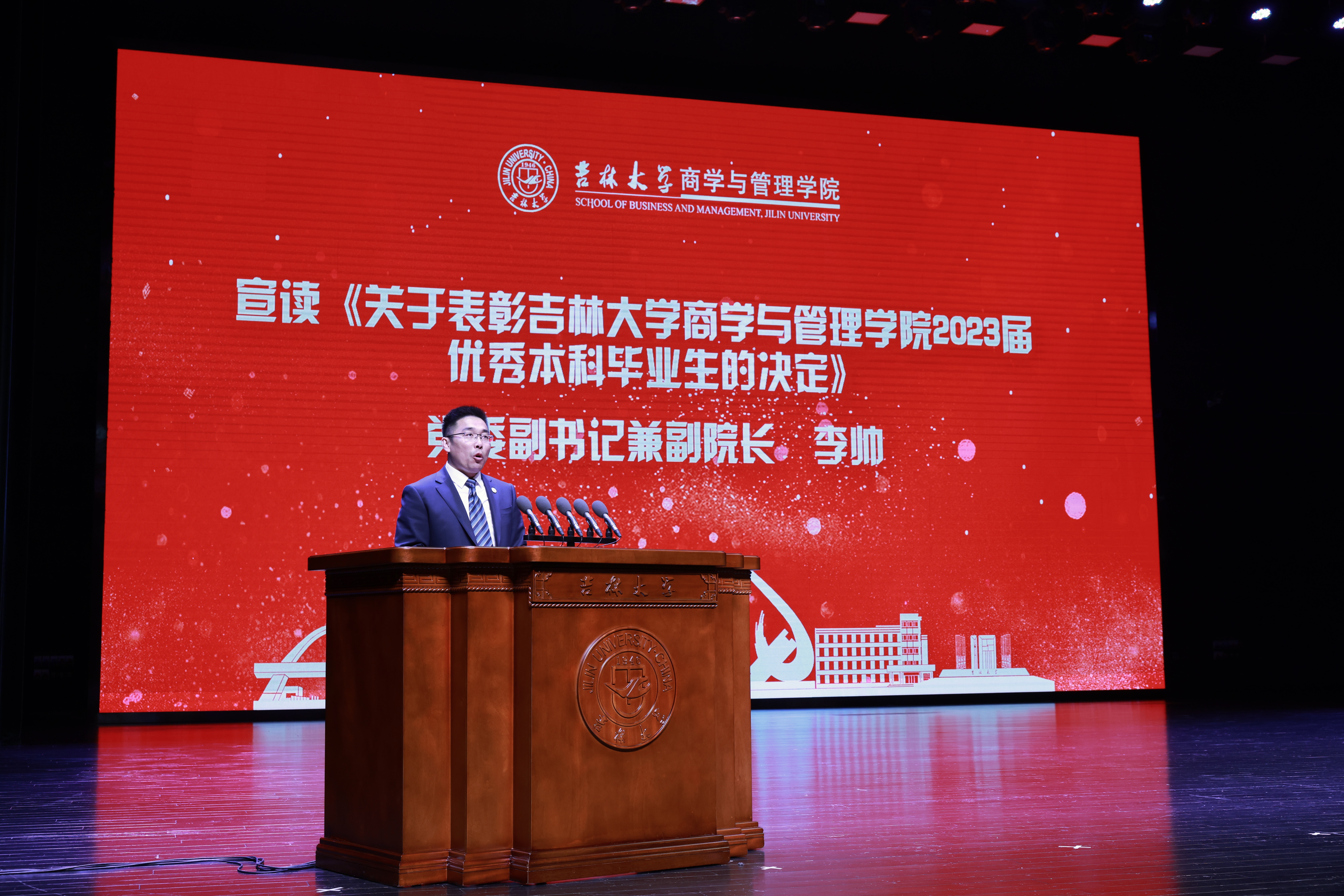 典礼上,44118太阳成城集团党委副书记兼副院长李帅老师、44118太阳成城集团党委副书记马腾老师分别宣读了《关于表彰44118太阳成城集团2023届优秀本科毕业生的决定》和《关于表彰44118太阳成城集团2023届优秀毕业研究生的决定》。