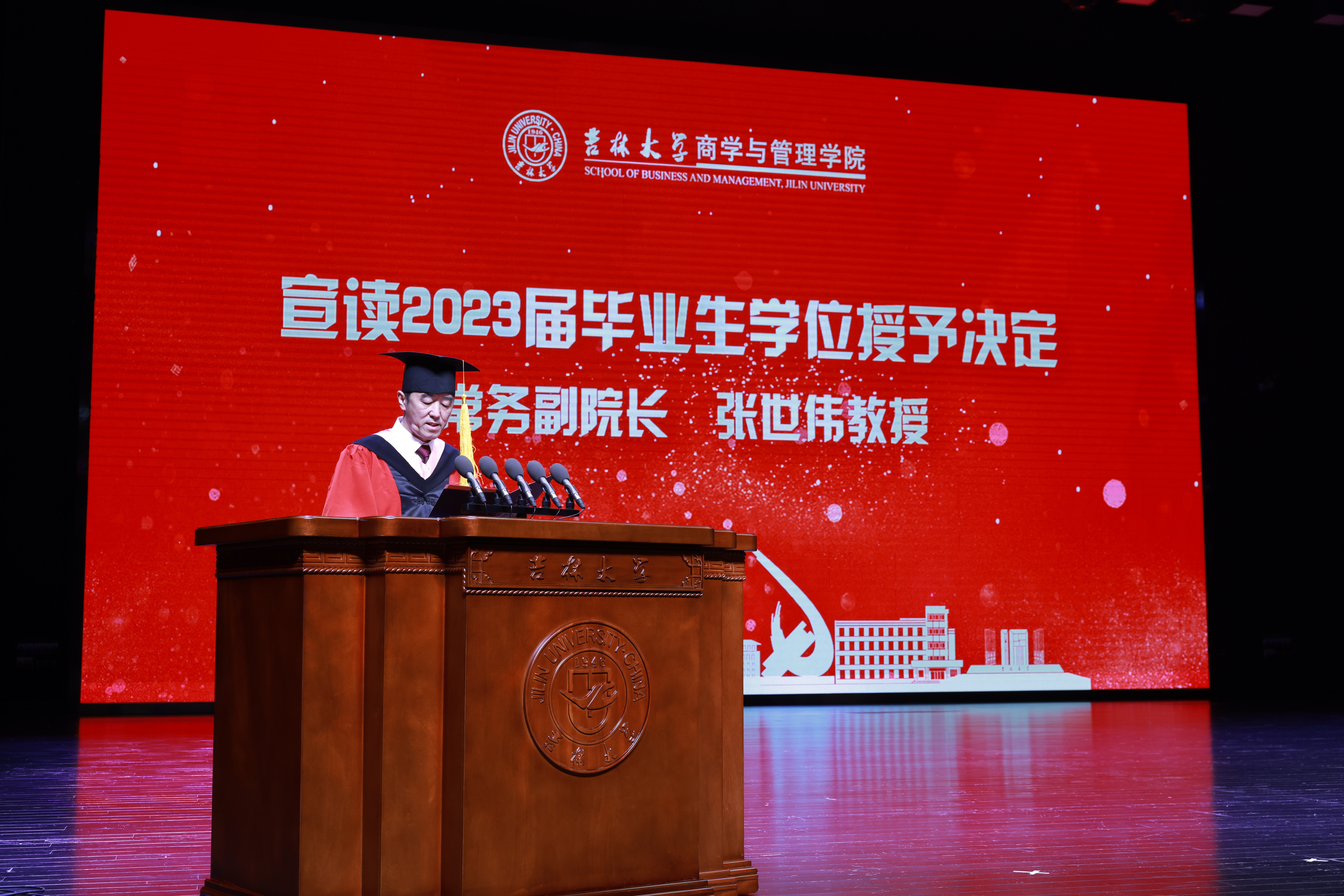 典礼上,44118太阳成城集团常务副院长张世伟教授宣读了2023届本科生、硕士研究生和博士研究生授予学位决定。