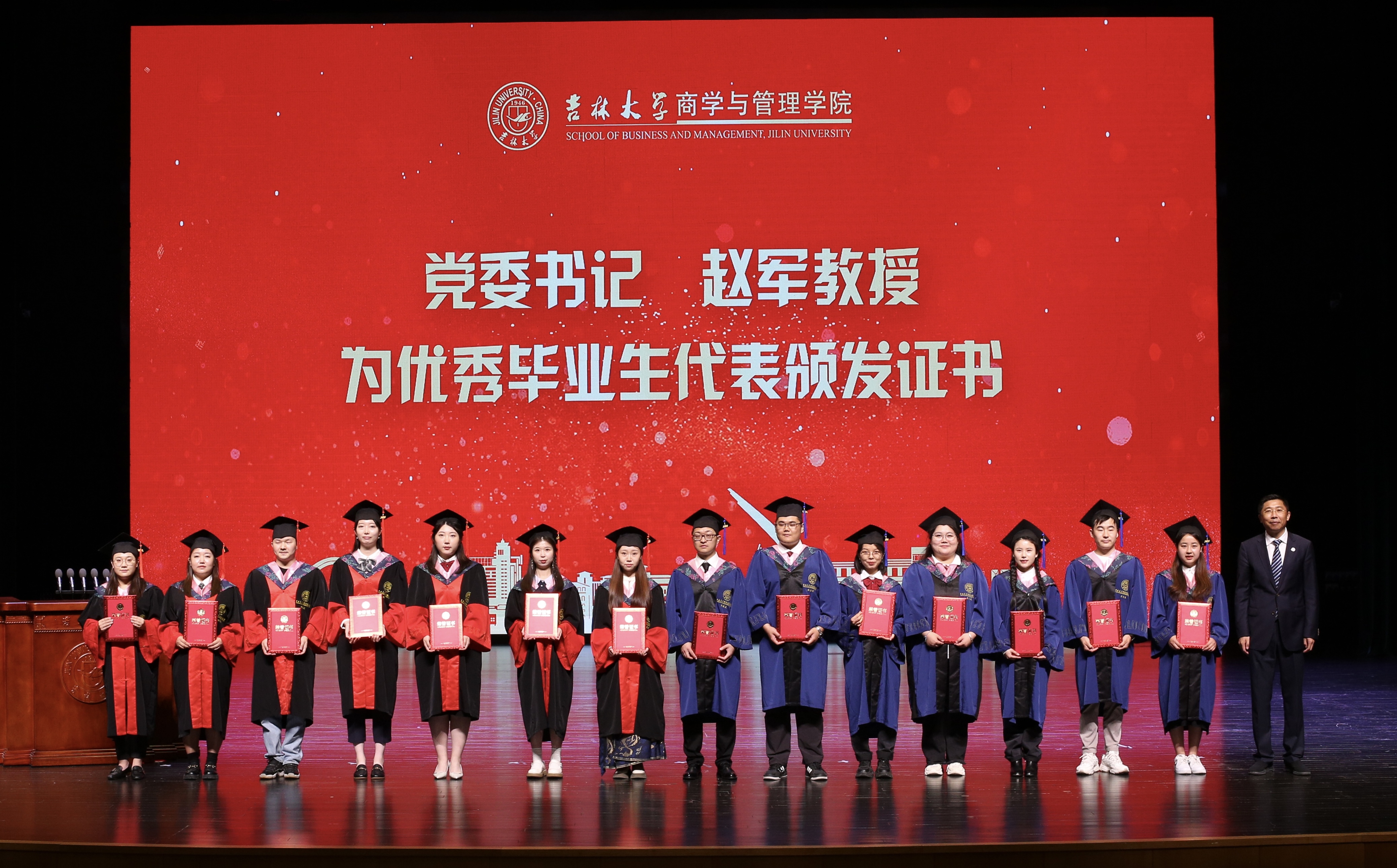 44118太阳成城集团党委书记赵军教授为优秀毕业生代表颁发证书。这是一份荣耀,更是一份力量,是商管师生的精神共勉,更是传承一份责任、一份担当,愿同学们在前行的道路上继续笃行慎思,求真务实,坚持深耕不辍,必有未来可期!