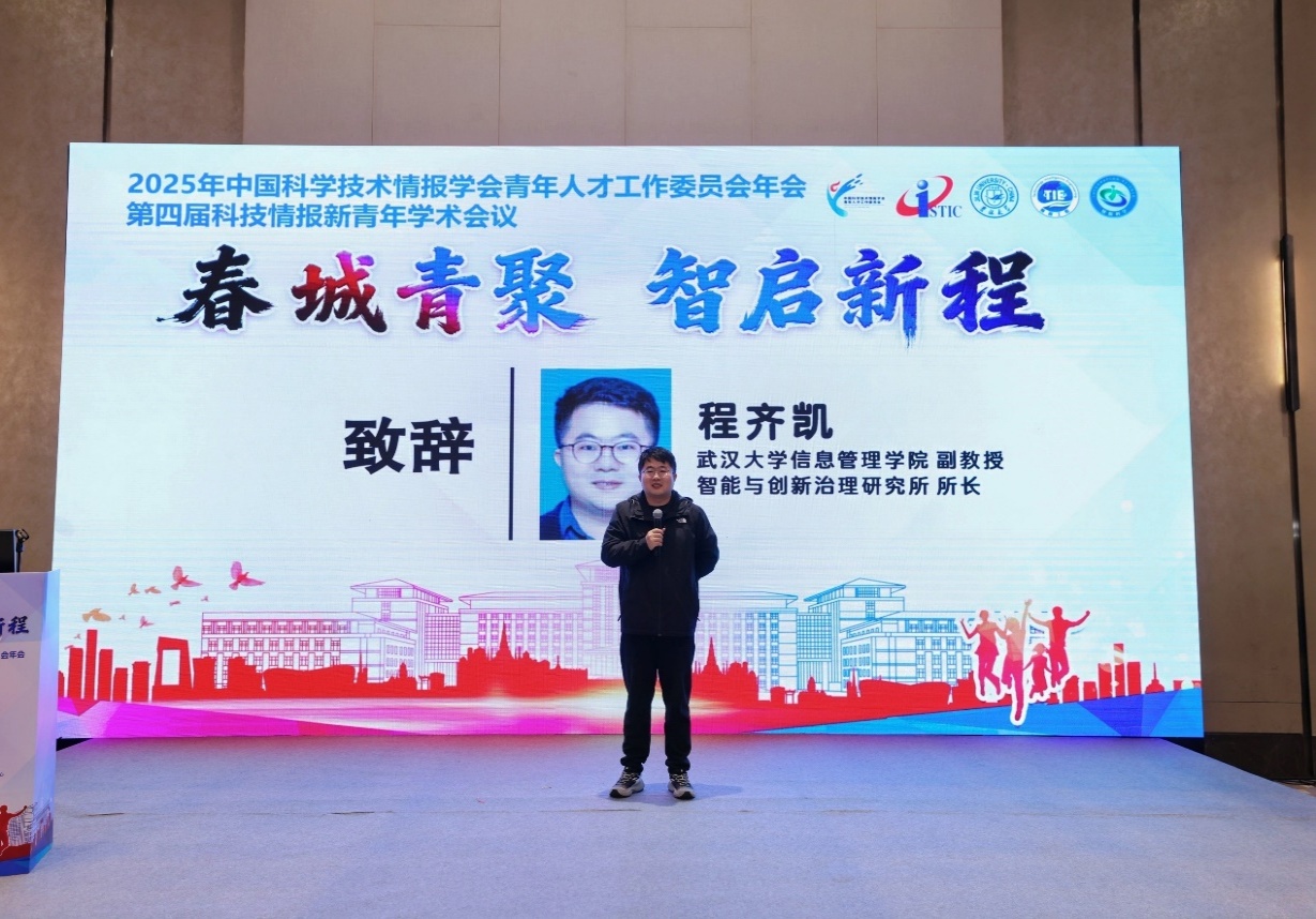 最后,会议举行交接仪式。中国科学技术情报学会青年人才工作委员会主任刘志辉研究员将2026年会议主办权移交武汉大学信息管理学院,武汉大学举办方代表程齐凯副教授向全场嘉宾发出热情邀约,表示武汉大学将精心策划,力争将明年的盛会打造成开放、前沿、高效的学术交流盛会,欢迎大家明年相约武汉,共襄学术盛举。