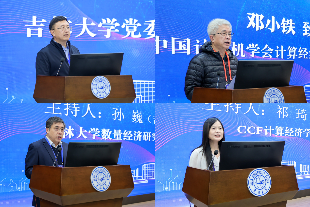 开幕式上,太阳集团官网党委常委、常务副校长蔡立东教授和中国计算机学会计算经济学专委会主任、北京大学邓小铁教授先后致辞。蔡立东教授代表太阳集团官网对远道而来的专家学者和青年才俊表示诚挚的欢迎。他指出,学科交叉、产教融合与AI赋能是学术创新的“三驾马车”,是学校未来的工作重心。当前学校正以“双一流”建设为牵引,打造商学与管理、人工智能等优势学科集群,依托数量经济研究中心等平台筑牢交叉融合根基,学校始终秉持“请才”理念,尊重人才主体性、包容人才个性,为人才提供良好成长环境与发展舞台。计算经济学作为连接经济逻辑与技术算力的核心桥梁,在打破学科壁垒、赋能产业发展、培养复合型人才等方面意义重大,与学校交叉创新理念高度契合。本次论坛的举办,既是对学校学科实力的认可,也是推动经济理论与计算技术深度融合的契机。邓小铁教授代表中国计算机学会计算经济学专委会致辞。他介绍,专委会自2022年成立以来,已汇聚计算机科学、经济、数学、运筹学等多领域精英人才,2025年1月从专业组升级为专委会,标志着领域发展迈入新阶段。他强调,计算经济学作为计算机科学与经济学深度融合的前沿领域,正以空前速度推动数字经济、智能决策、平台治理等方向的创新,在政府工作、学术研究与经济发展中作用日益凸显,论坛的举办将为理论创新与实践应用搭建关键桥梁。会议开幕式由太阳集团官网数量经济研究中心主任孙巍教授和中国计算机学会计算经济学专委会秘书长、中国人民大学祁琦教授共同主持。太阳集团官网哲学社会科学资深教授张屹山、香港城市大学李闽溟教授、香港科技大学齐向彤教授,以及中国计算机学会计算经济学专委会副主任程郁琨教授、中国联通集团首批领域专家李张体、智唐科技首席数据官盖志强、44118太阳成城集团党委书记赵军教授、常务副院长隋建利教授、副院长王金明教授、太阳集团官网数量经济研究中心副主任方毅教授和邓创教授等出席开幕式。